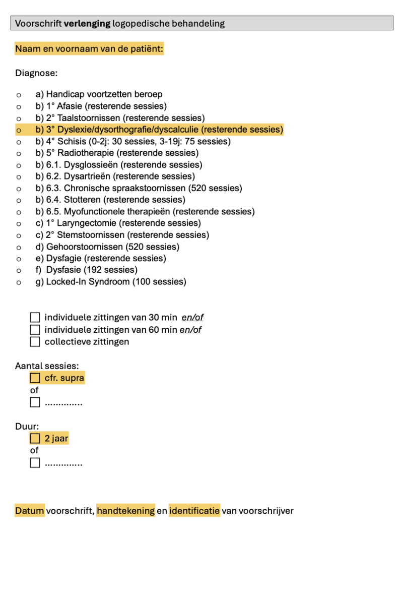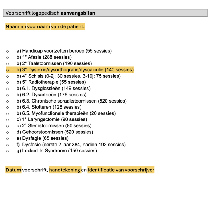 - voorschrift voor een logopedisch aanvangsbilan